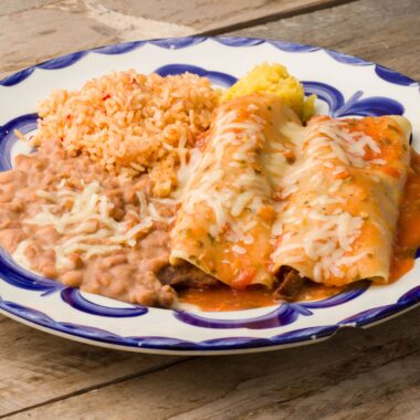 Melted jack cheese with ranchera sauce served with refried beans and rice. Add Chicken Machaca or Beef Barbacoa for an additional cost.